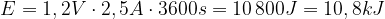 Die Spannung ist U=1,2 V, die Stromstärke ist I=2500 mA = 2,5 A und h steht für eine Stunde, also für 3600 Sekunden. Dann entspricht die Energiemenge eines Akkus mit 2500 mAh: