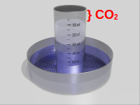 - Die Brausetablette löst sich auf, CO2 steigt nach oben und sammelt sich im Glas