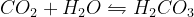 Wenn Kohlendioxyd (CO2) und Wasser (H2O) aufeinander treffen, dann löst sich ca 1% des CO2 im Wasser und verbindet sich mit den Wassermolekülen zu Kohlensäure (H2CO3):
