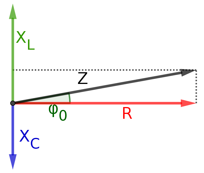 gilt und der Strom in einer Reihenschaltung bei allen Widerständen gleich ist, haben die Wechselstromwiderstände bei einer Reihenschaltung die gleiche Zeitabhängigkeit, wie die Spannungen. Daher kann man ein solches Zeigerdiagramm auch gleich für die Wechselstromwiderstände formulieren. Die Vektorsumme dieser Zeiger ist die sogenannte Impedanz. Der Betrag der Impedanz ist der Scheinwiderstand. Dies ist der Widerstand den ein Experimentator am Schaltkreis von seinem messgerät abliest: