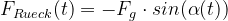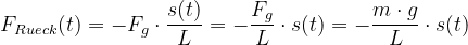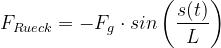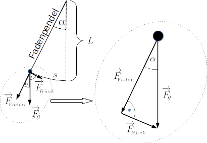 Die Gewichtskraft Fg teilt sich auf in die Kraft, die den Faden spannt FFaden und die Rückstellkraft FRück .