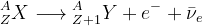 Hier verwandelt sich ein Proton des Atomkerns in ein Neutron. Dabei werden ein Positron und ein Elektron-Neutrino vom Atomkern als Beta-plus-Strahlung abgestoßen: