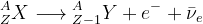 Hier verwandelt sich ein Neutron des Atomkerns in ein Proton. Dabei werden ein Elektron und ein Elektron-Antineutrino vom Atomkern als Beta-minus-Strahlung abgestoßen: