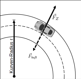 Wenn ein Fahrzeug in einer Kurve so schnell fährt, dass die Zentrifugalkraft größer wird als die Haftkraft der Reifen auf der Fahrbahn, dann "fliegt" es aus der Kurve. Das heißt die Reifen verlieren die Haftkraft und beginnen auf der Straße zu gleiten. Ein Auto ist dann für Momente nicht mehr steuerbar.