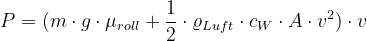 teilen, dann erhalten wir eine Gleichung für die Leistung in Abhängigkeit von der Geschwindigkeit: